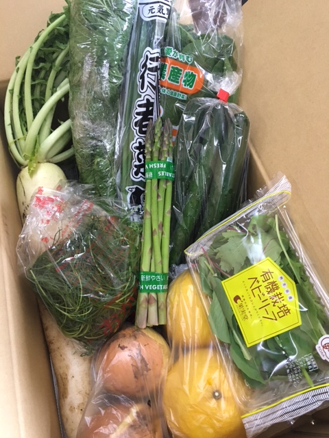 玉ねぎ、アスパラガス、大根、キュウリ、行者菜、小松菜、おかひじき、ベビーリーフ、あいこ、河内晩柑