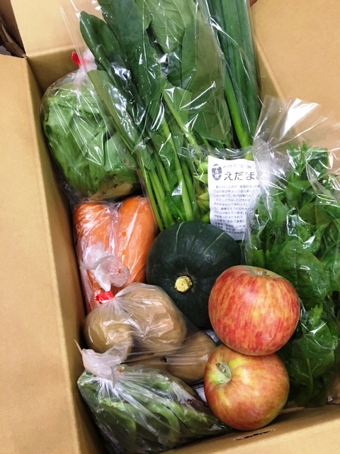 人参、じゃがいも、レタス、小松菜、つるむらさき、ミニカボチャ、葉ねぎ、枝豆、長なす又はきゅうり又はインゲン、りんご(つがる)