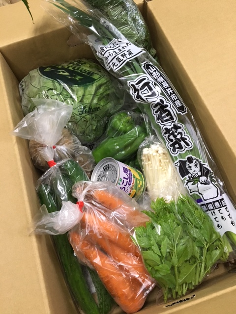 人参、じゃがいも、レタス、きゅうり、行者菜、うこぎ、かぶ、みずな(山菜)、えのき、トウモロコシ缶