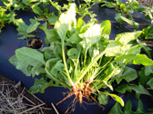 - ほうれん草は、葉と芯の柔らかい所を使用。レタスと共に手でちぎる。